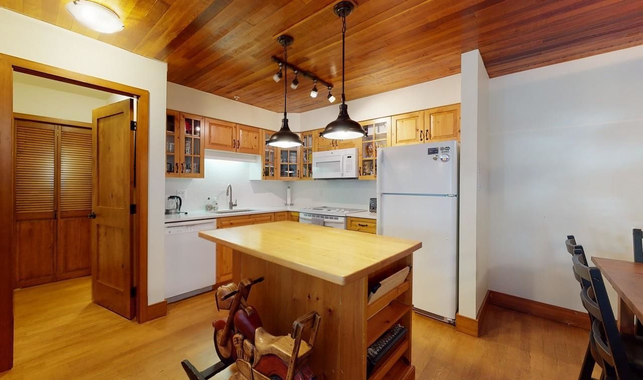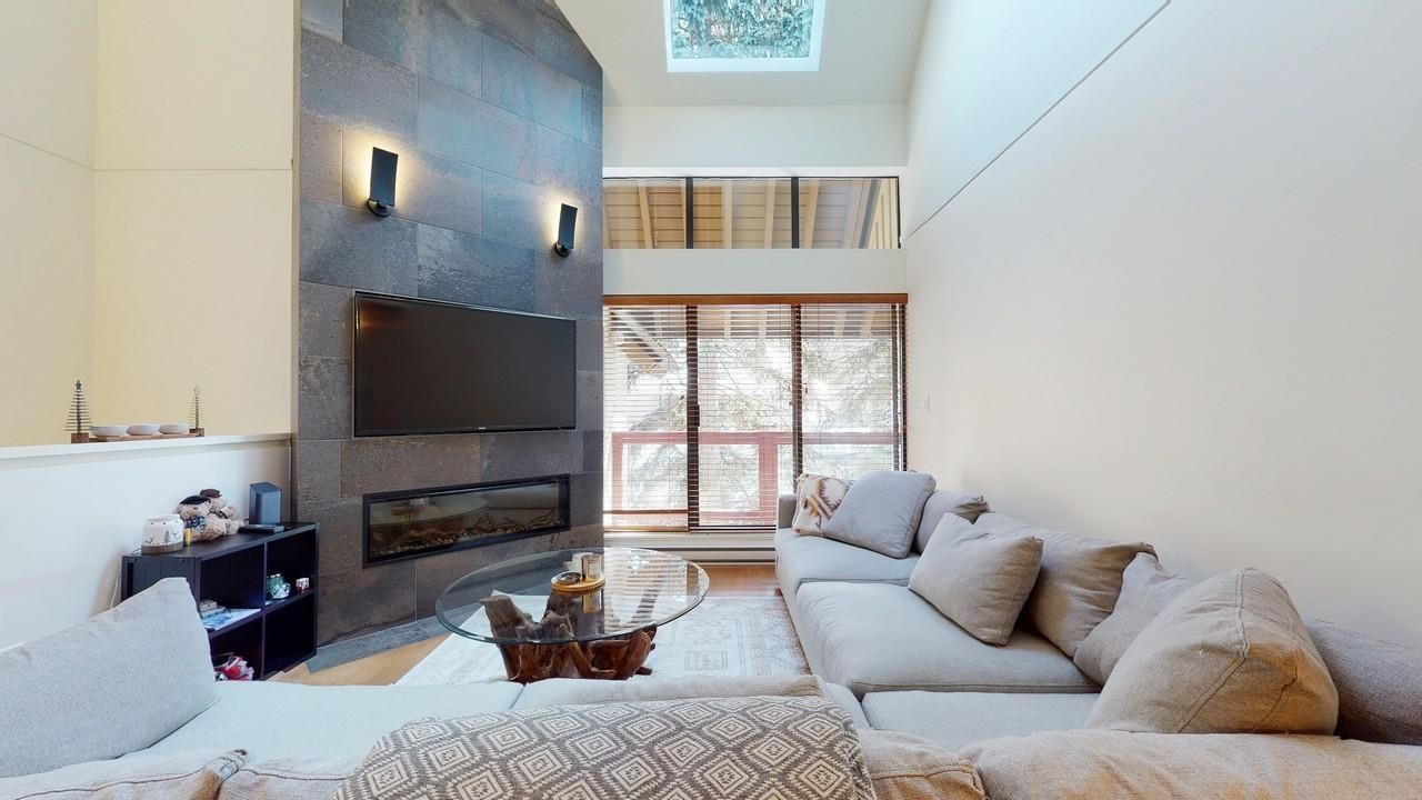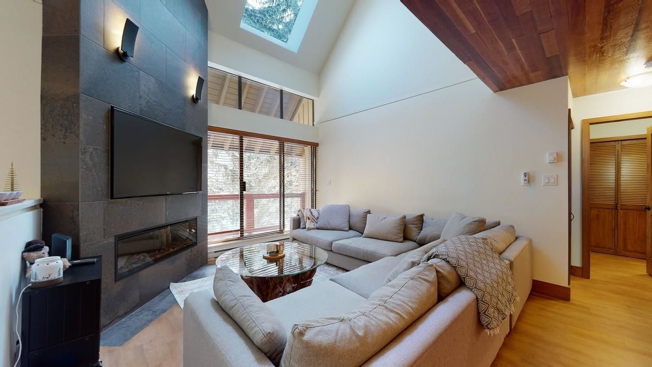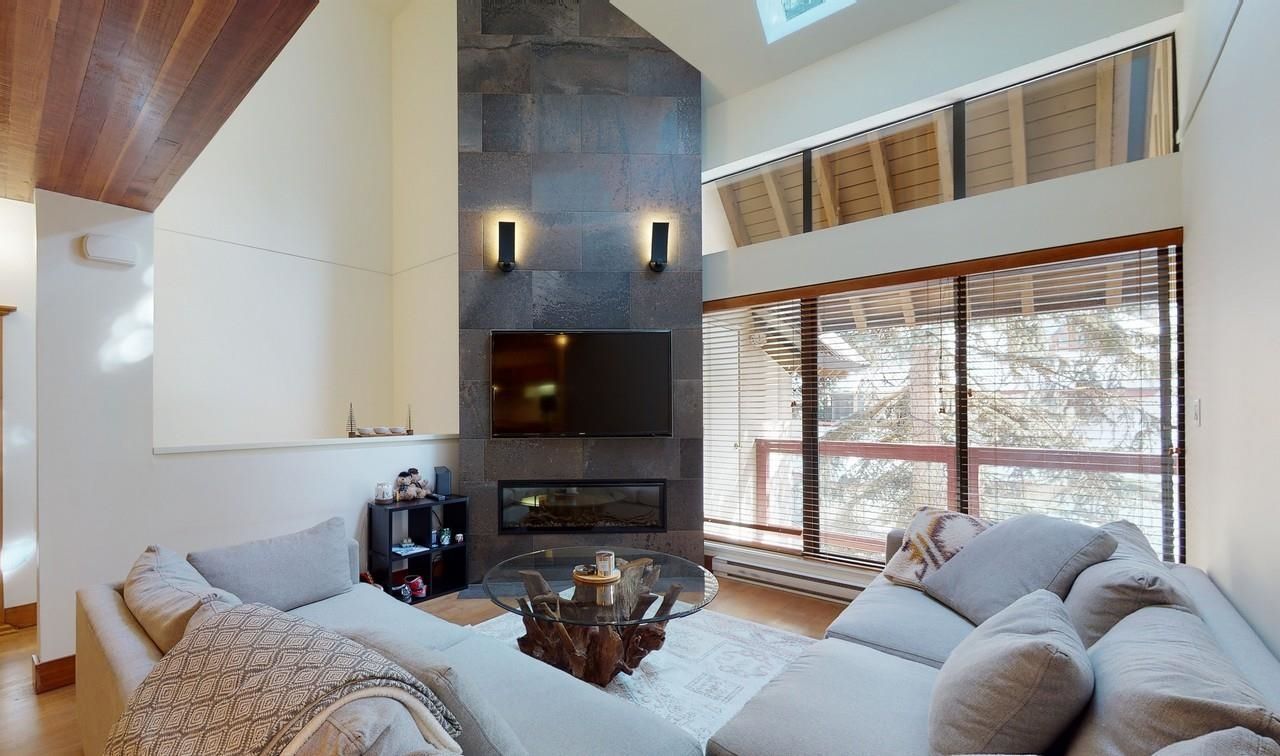 ONE OF THE BEST LOCATIONS IN WHISTLER!! This 3 bedroom 2 bathroom home has been recently updated with newer kitchen, flooring, bathrooms, and much more! The lower level has a large tiled entry perfect for gearing up for the slopes, the super bright open plan main floor features a fabulous living room with vaulted ceilings, skylight, tiled floor to ceiling chimney with built in electric fireplace, sliding doors leading out to a private balcony, open plan kitchen/dining area and a large bedroom. Upstairs is equipped with a large Master with newer in-suite, a large 3rd bedroom with built in Bunk Beds and plenty of storage. 1 secure parking underground, in-suite storage, rentals allowed, 1 pet. Unbeatable location!.
