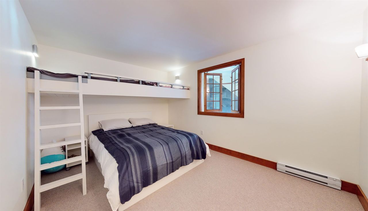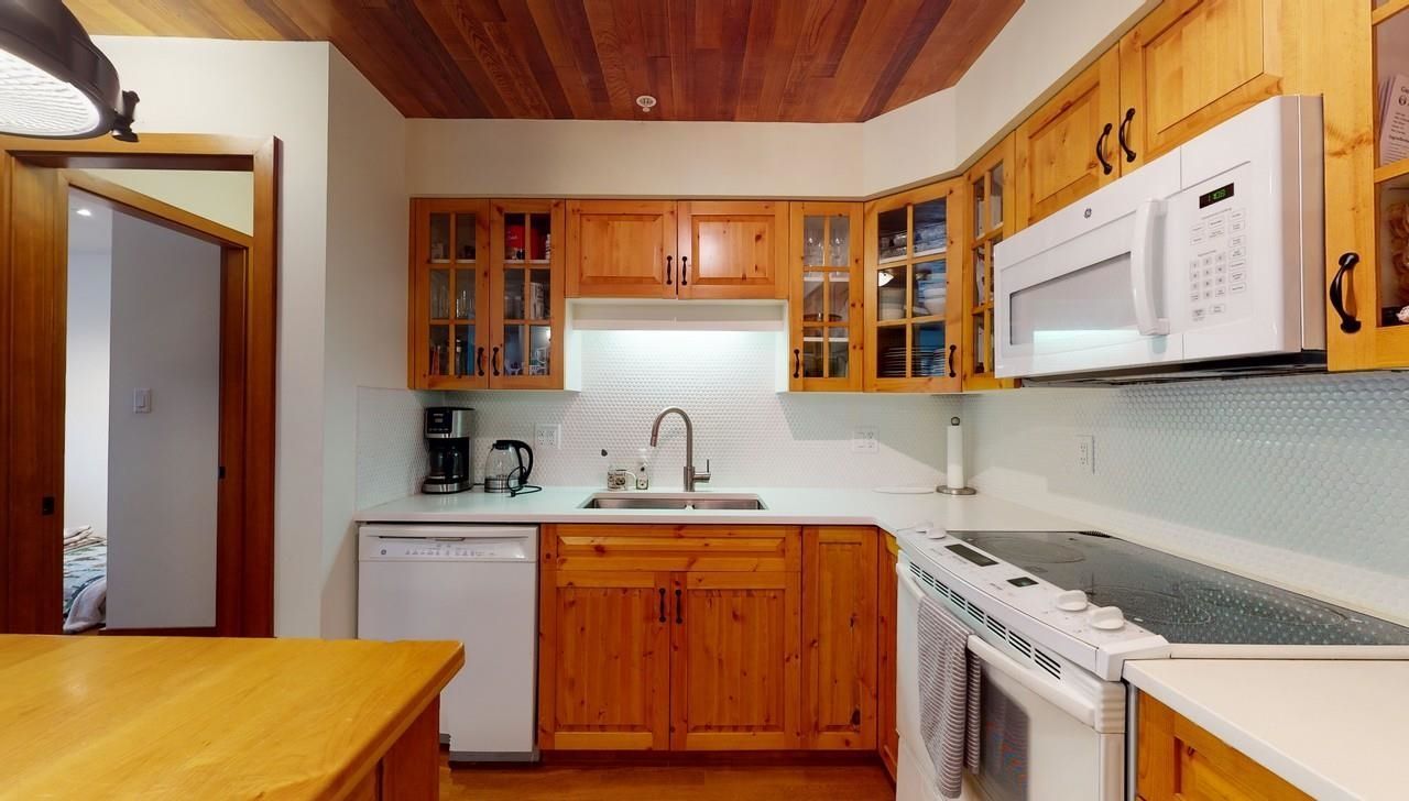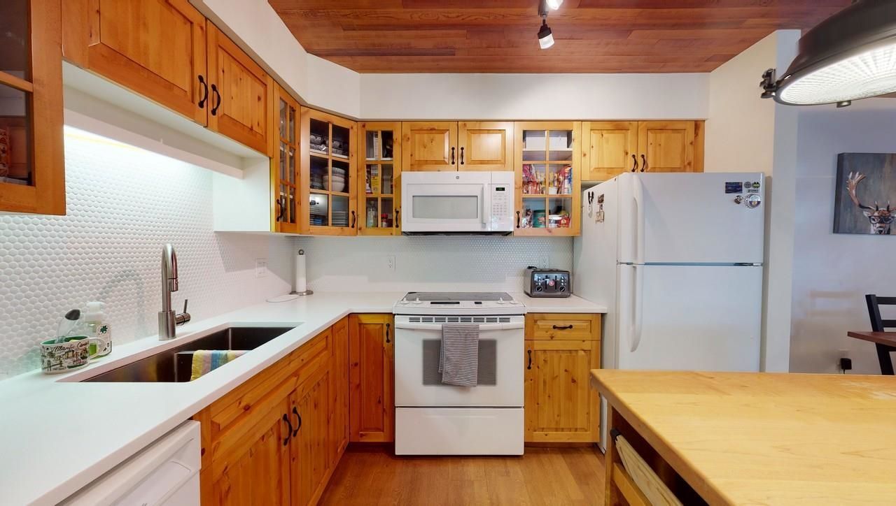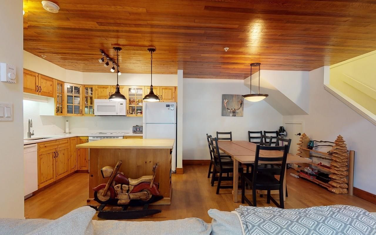 ONE OF THE BEST LOCATIONS IN WHISTLER!! This 3 bedroom 2 bathroom home has been recently updated with newer kitchen, flooring, bathrooms, and much more! The lower level has a large tiled entry perfect for gearing up for the slopes, the super bright open plan main floor features a fabulous living room with vaulted ceilings, skylight, tiled floor to ceiling chimney with built in electric fireplace, sliding doors leading out to a private balcony, open plan kitchen/dining area and a large bedroom. Upstairs is equipped with a large Master with newer in-suite, a large 3rd bedroom with built in Bunk Beds and plenty of storage. 1 secure parking underground, in-suite storage, rentals allowed, 1 pet. Unbeatable location!.