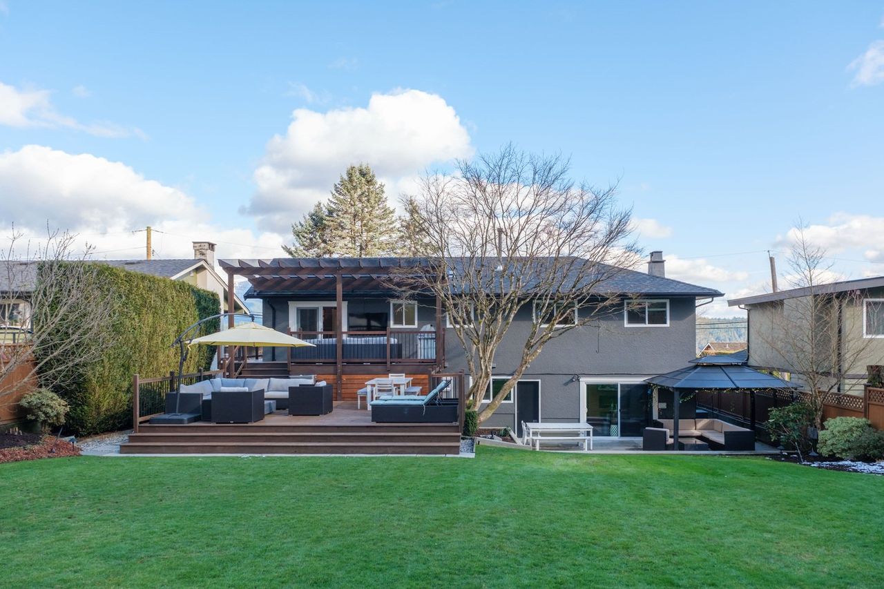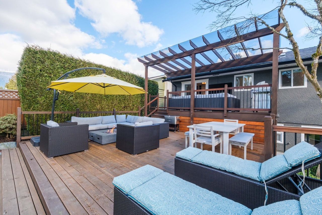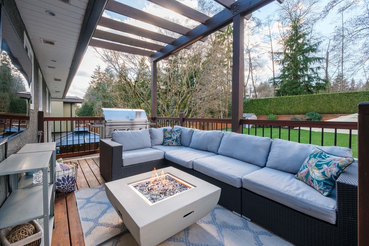 SPECTACULAR HOME AND GARDENS, this 4 Bedroom UPDATED HOME features a spectacular partially covered back deck looking over the large and PRIVATE manicured backyard with mature shrubs, in ground sprinkler system, evening lighting and fully fenced for UTMOST privacy. The front yard features a large NEWER OVERSIZED CONCRETE DRIVEWAY. Upstairs is equipped with a newer gourmet kitchen, flooring, bathrooms, fireplace and custom built in's throughout. Downstairs has an extra bedroom and kitchen, perfect for an in-law or nanny suite with sliders leading out to the backyard. This home also features newer windows, a heat pump, AC, hot water on demand and so much more. Peek a boo WATER VIEWS, minutes to Dollarton Shopping Center, Sherwood Park Elementary, Beaches and much more. By Appointment only.