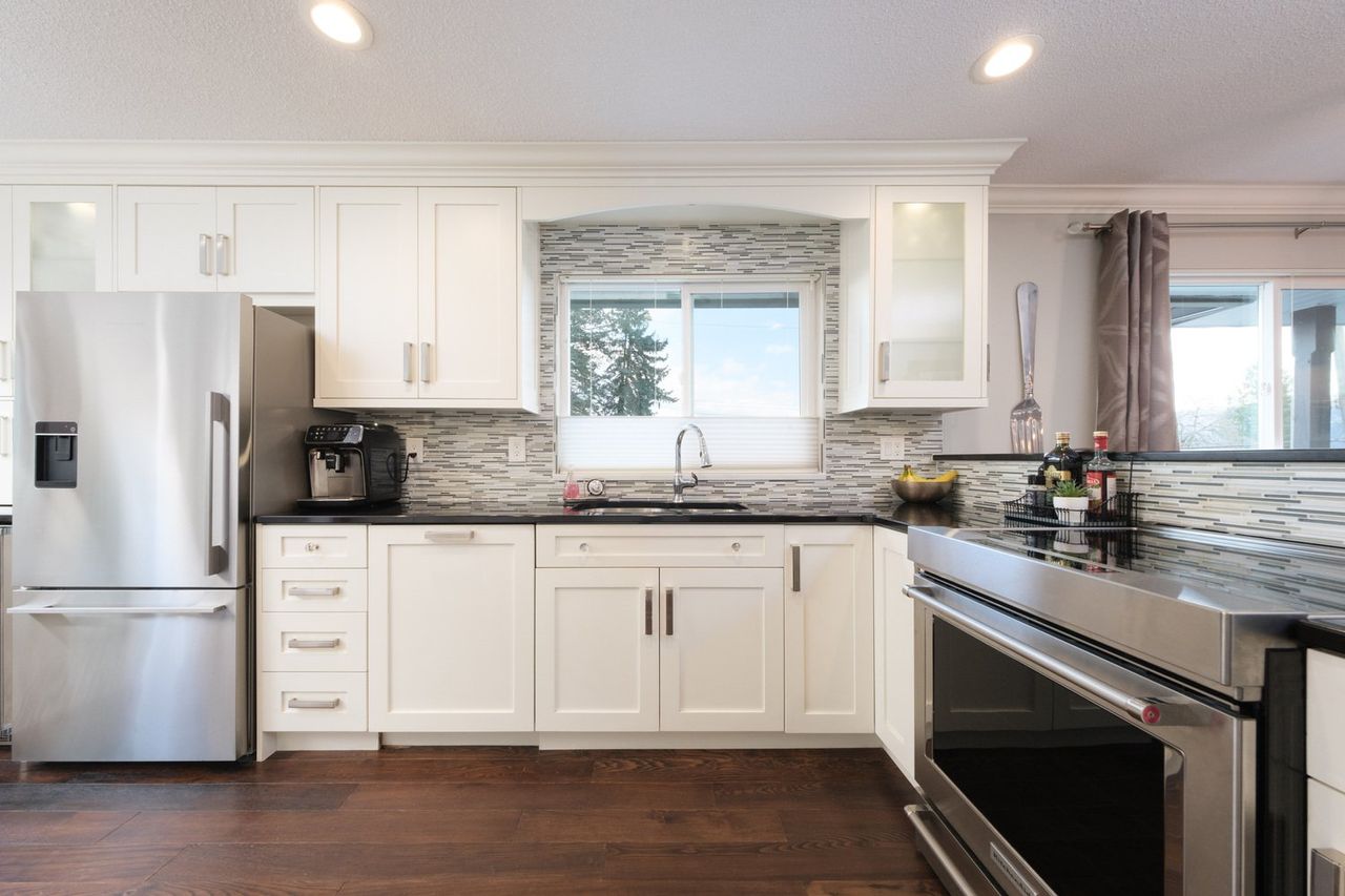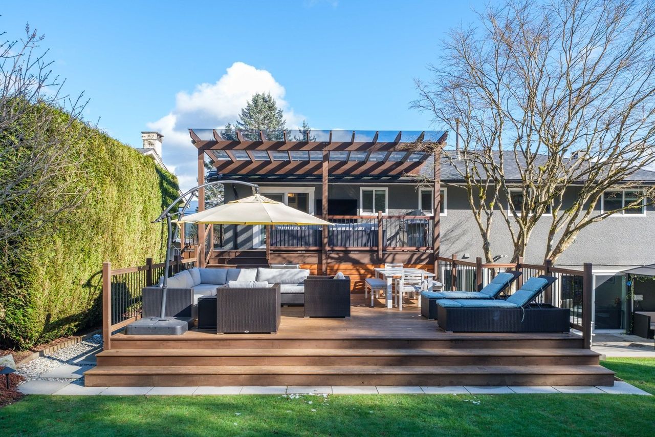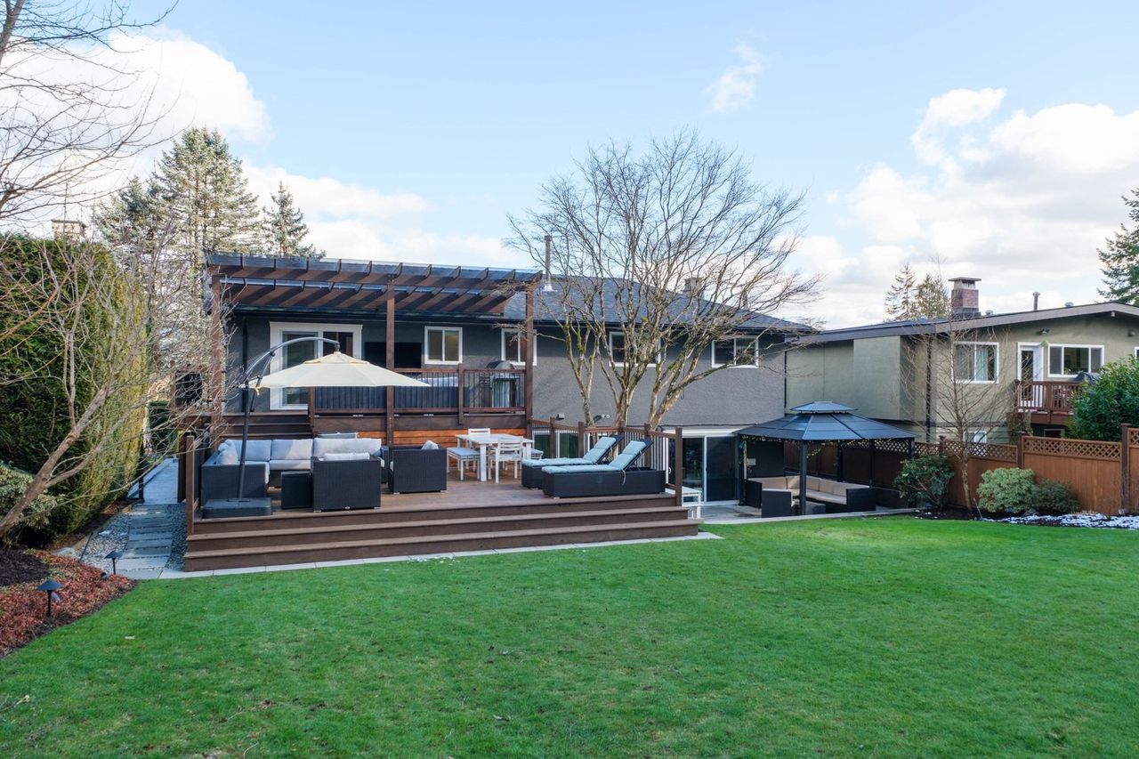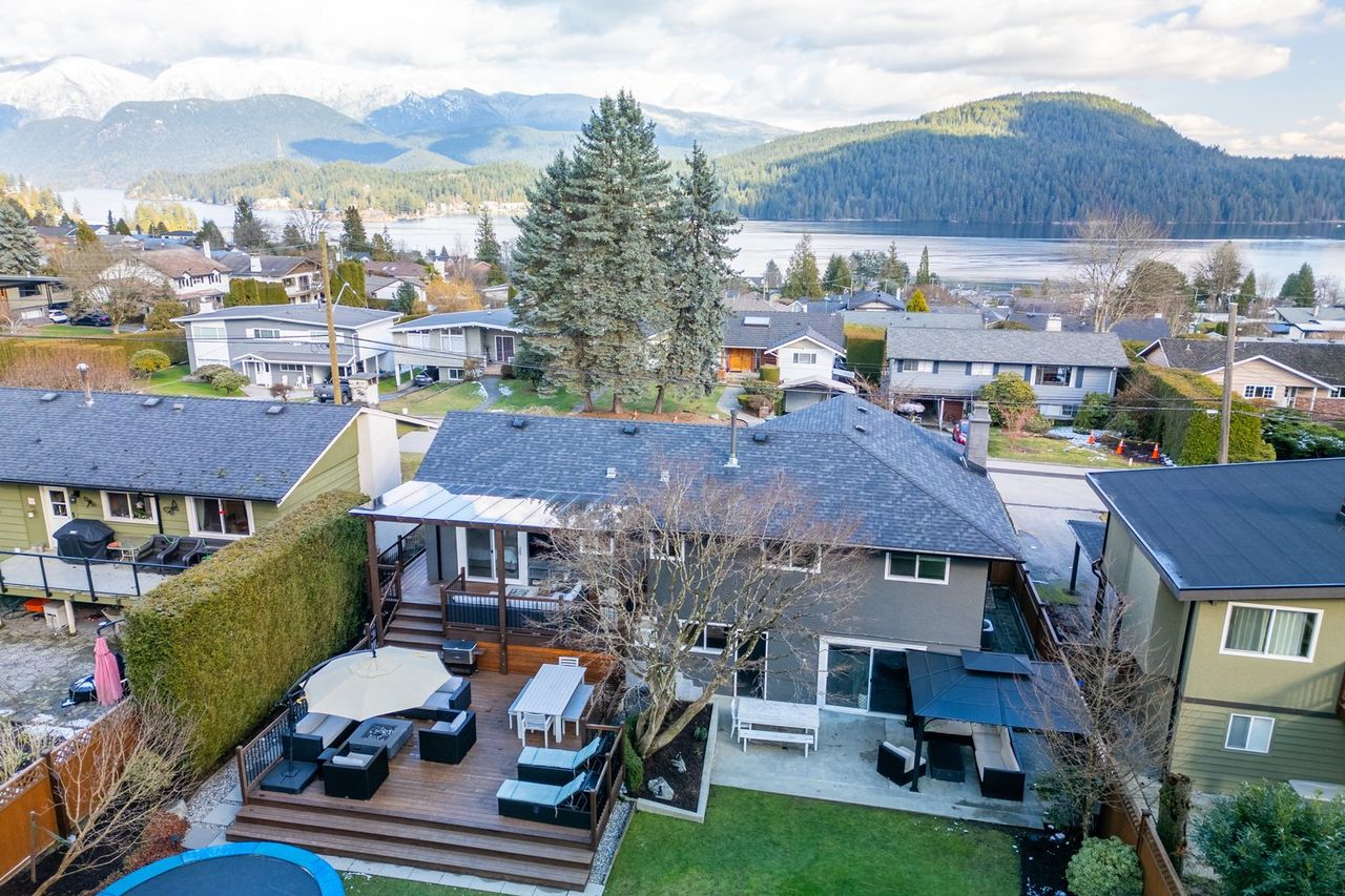 SPECTACULAR HOME AND GARDENS, this 4 Bedroom UPDATED HOME features a spectacular partially covered back deck looking over the large and PRIVATE manicured backyard with mature shrubs, in ground sprinkler system, evening lighting and fully fenced for UTMOST privacy. The front yard features a large NEWER OVERSIZED CONCRETE DRIVEWAY. Upstairs is equipped with a newer gourmet kitchen, flooring, bathrooms, fireplace and custom built in's throughout. Downstairs has an extra bedroom and kitchen, perfect for an in-law or nanny suite with sliders leading out to the backyard. This home also features newer windows, a heat pump, AC, hot water on demand and so much more. Peek a boo WATER VIEWS, minutes to Dollarton Shopping Center, Sherwood Park Elementary, Beaches and much more. By Appointment only.