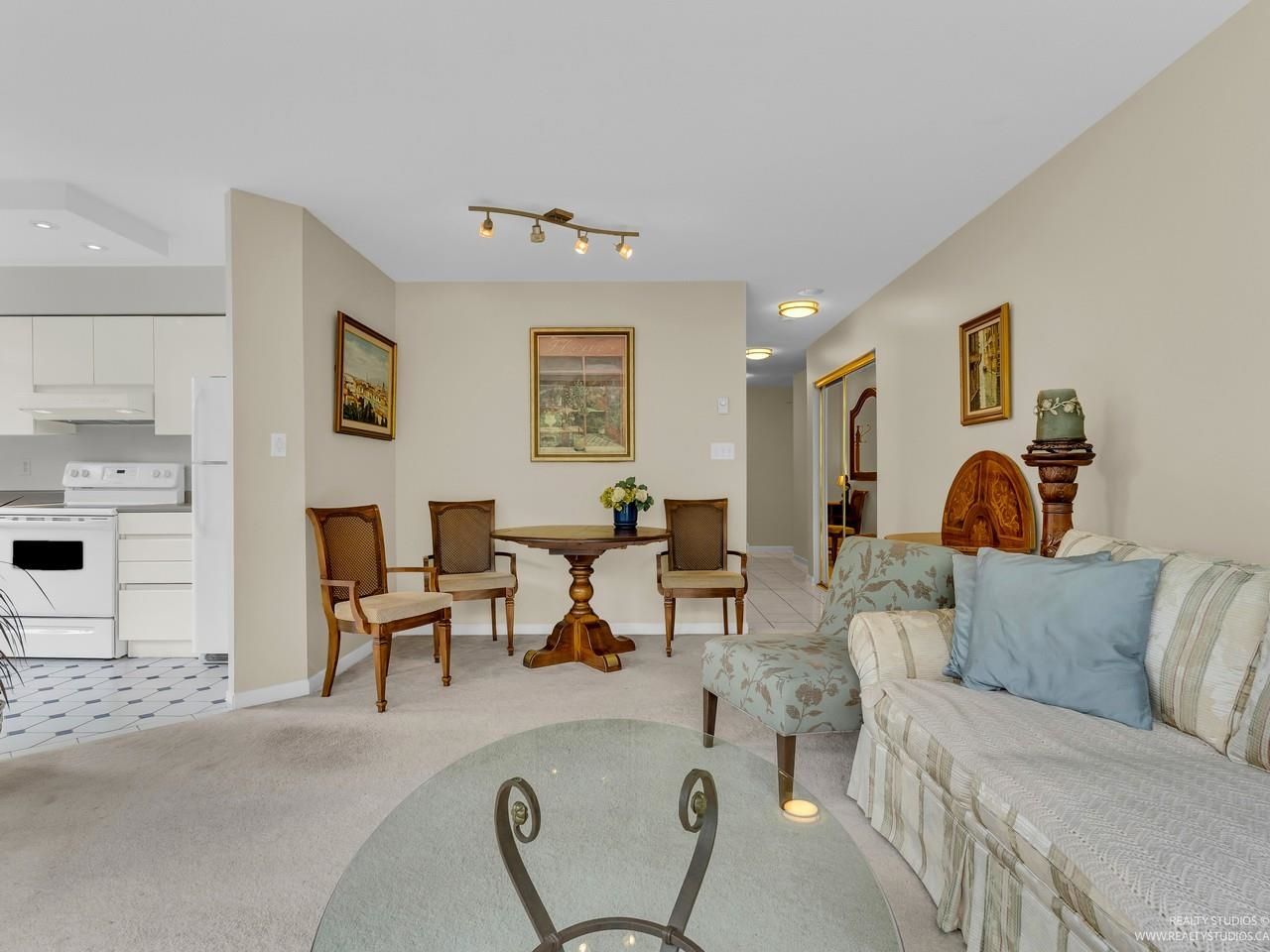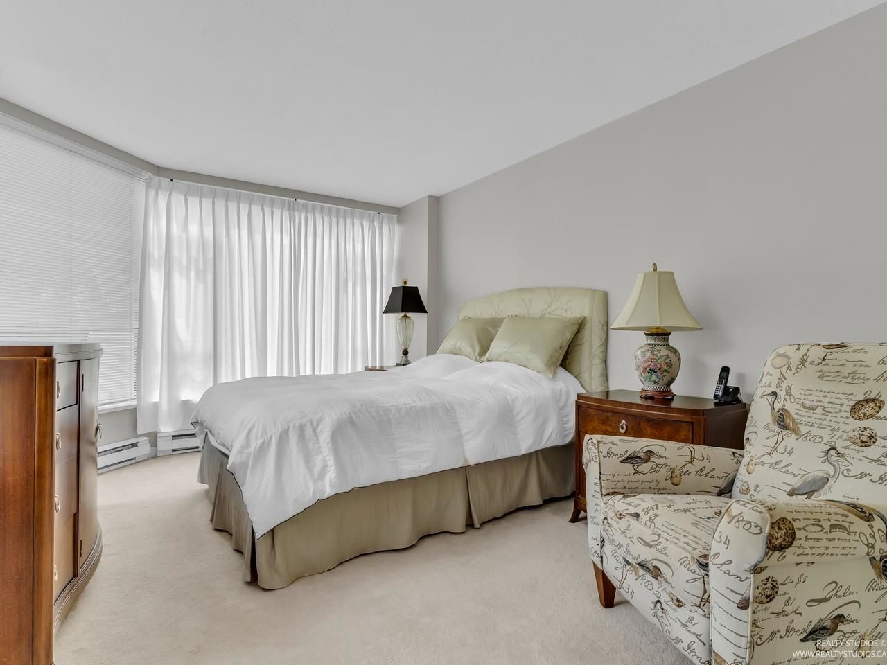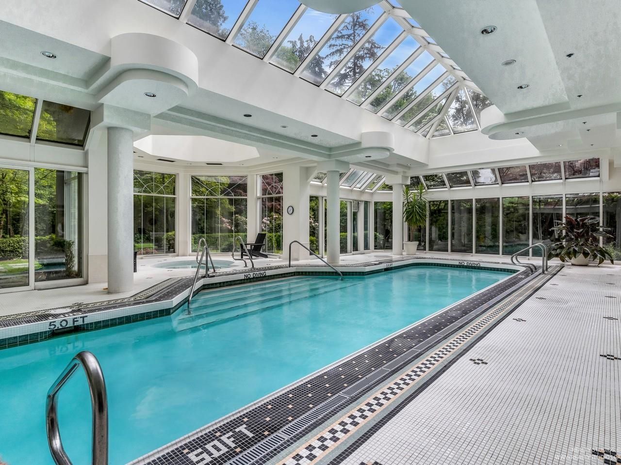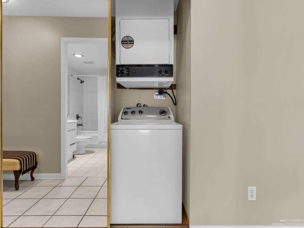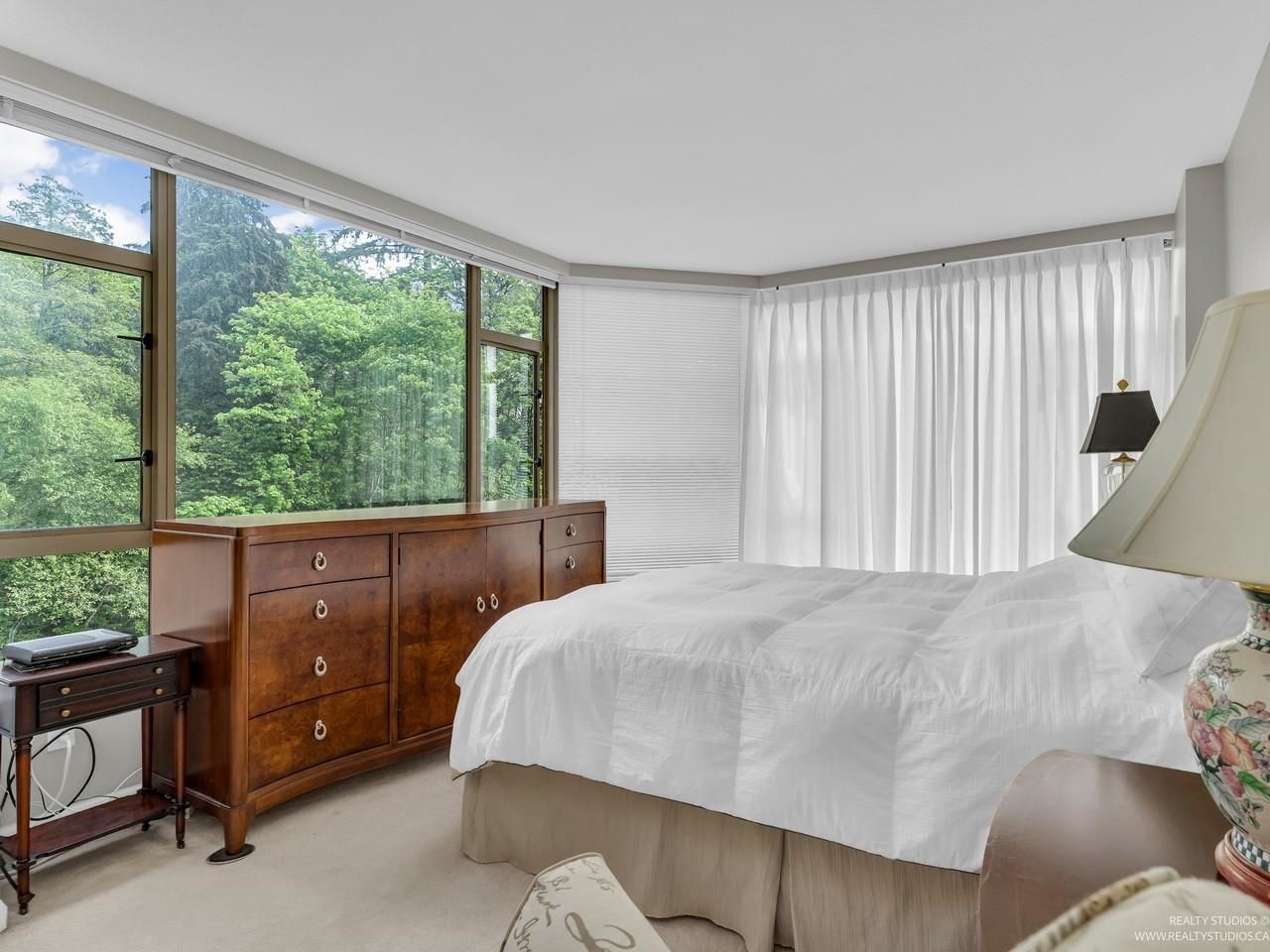 Welcome to one of the Most Desired Buildings on the North Shore. The Carlton at the Club offers resort-style amenities including a grand elegant lobby entrance with a large fireplace, indoor pool, hot tub, sauna, exercise center, library, party room, work shop, theatre, billiards room, card room, guest suite, onsite caretaker, and a private garden. This home boasts 792Sqft living space, floor-to-ceiling windows, in-suite laundry, and a Large walk-in closet off the primary Bedroom. The large functional layout offers a beautiful quiet treed exposure, covered balcony, and large living spaces with plenty of storage and built-ins. Just minutes from shopping, groceries, restaurants, and services. 1 parking, 1 storage included. A pleasure to show.