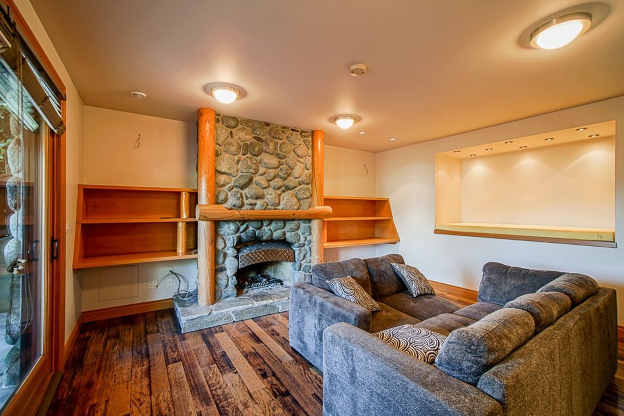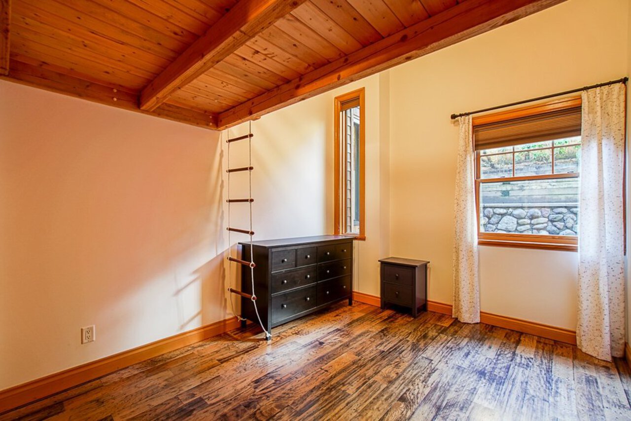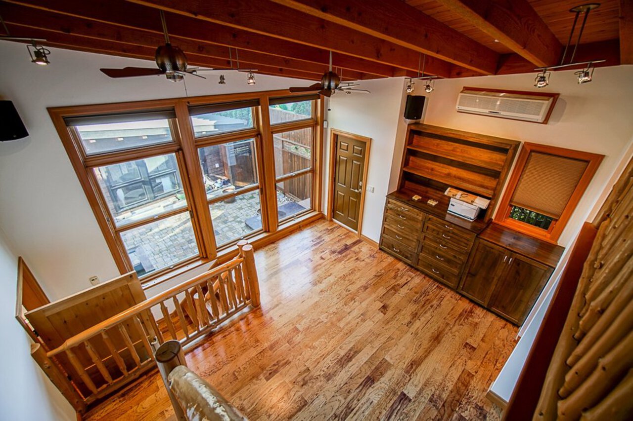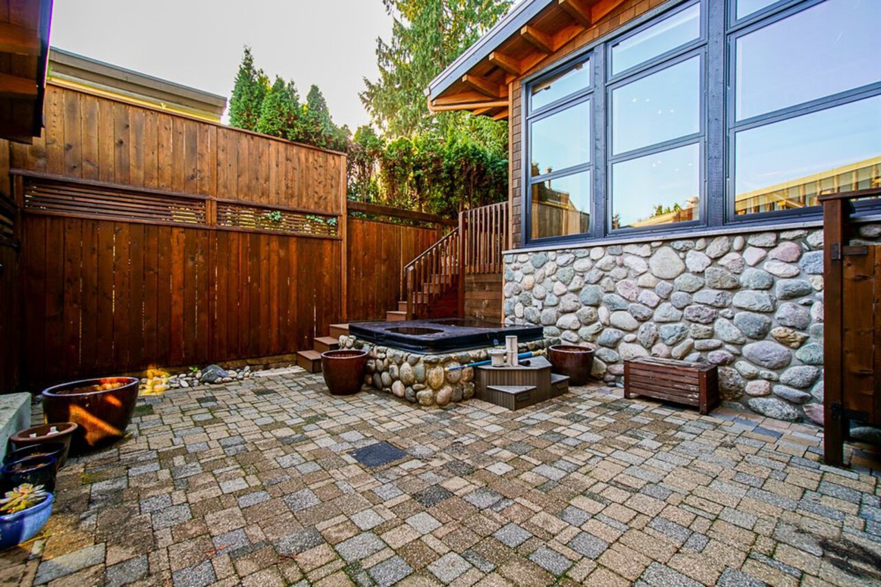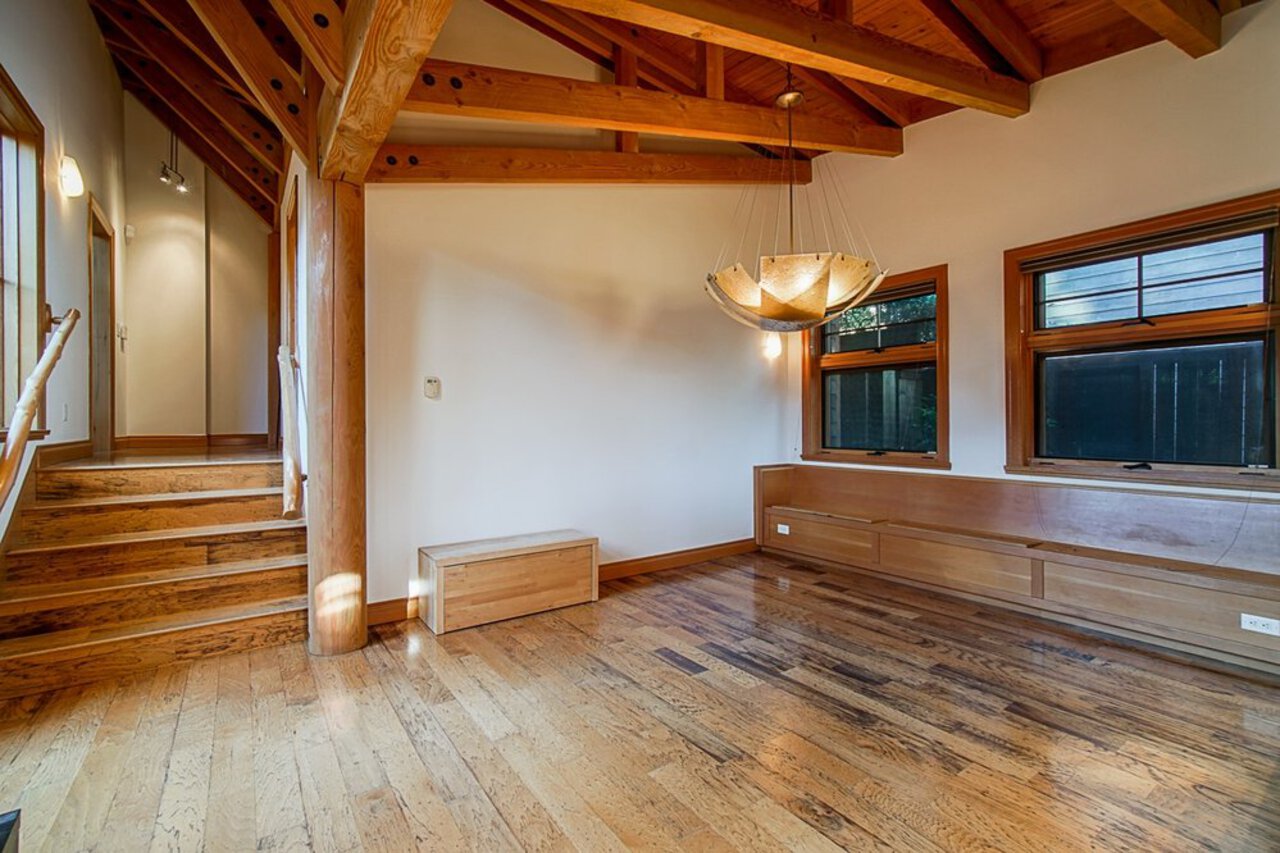 This custom built OCEAN VIEW home was completed in 2006,features 4 bedroom&3 bathrooms facing E towards Deep Cove Village. This home features an exposed open wood beam ceiling, 2 river rock wood burning fireplaces, gourmet kitchen with stainless steel appliances, gas range, island with granite counters, lots of custom built in cabinets and seating, a large balcony off the kitchen perfect for bbq&entertaining, gorgeous wood flooring, open plan living/dining, 3 bedrooms up, The Master with walk in closet and luxury ensuite facing the open courtyard with hot tub. Downstairs features another bedroom, 3 piece bathroom&family room with access to a large entertaining area outside above the garage. Bonus workshop down with 2 car garage, minutes to trails, Deep Cove Village, transit and the Beach.
