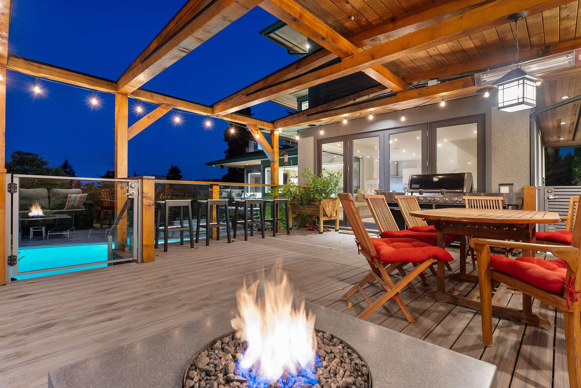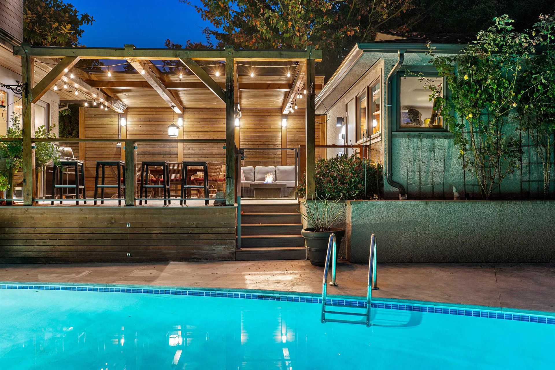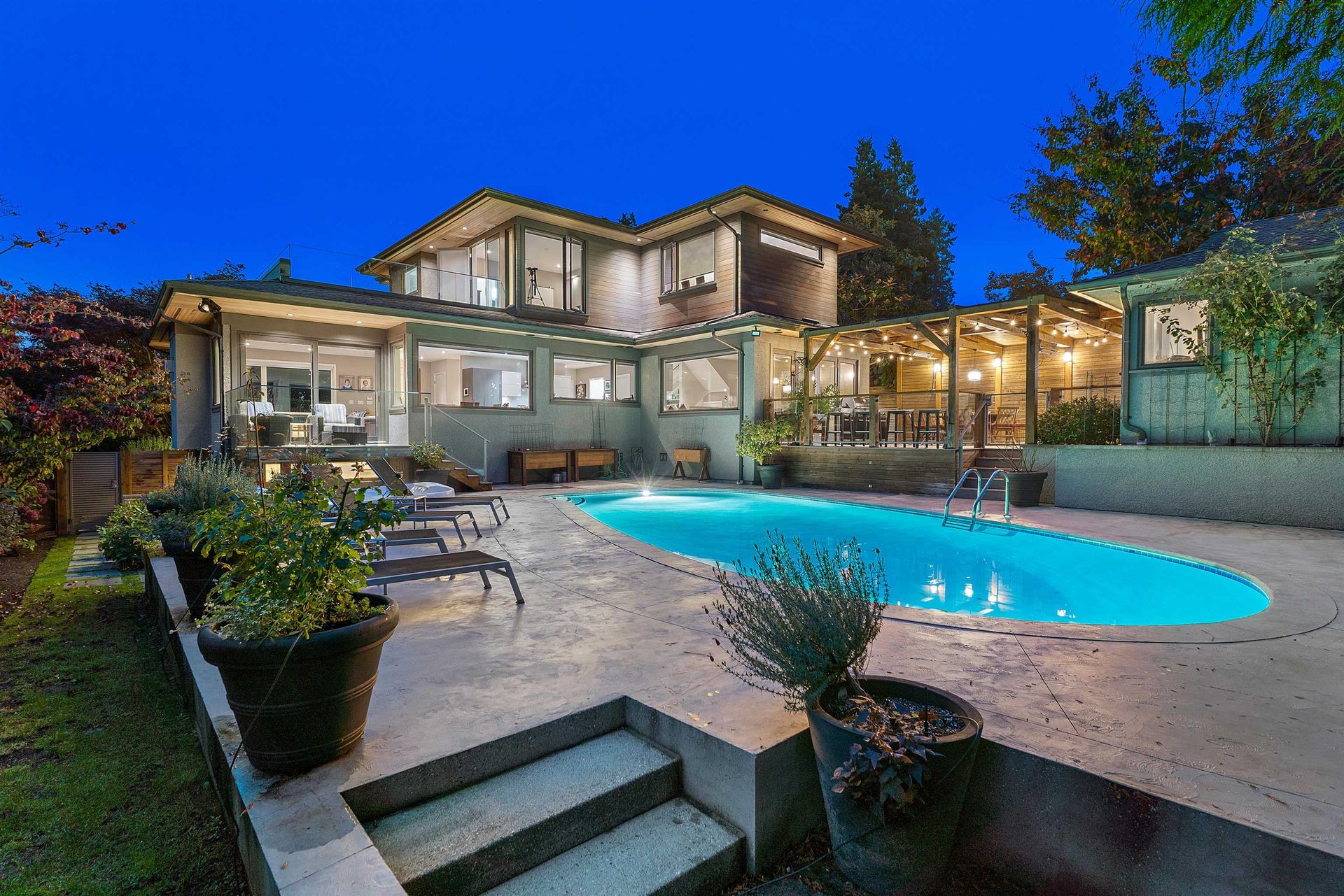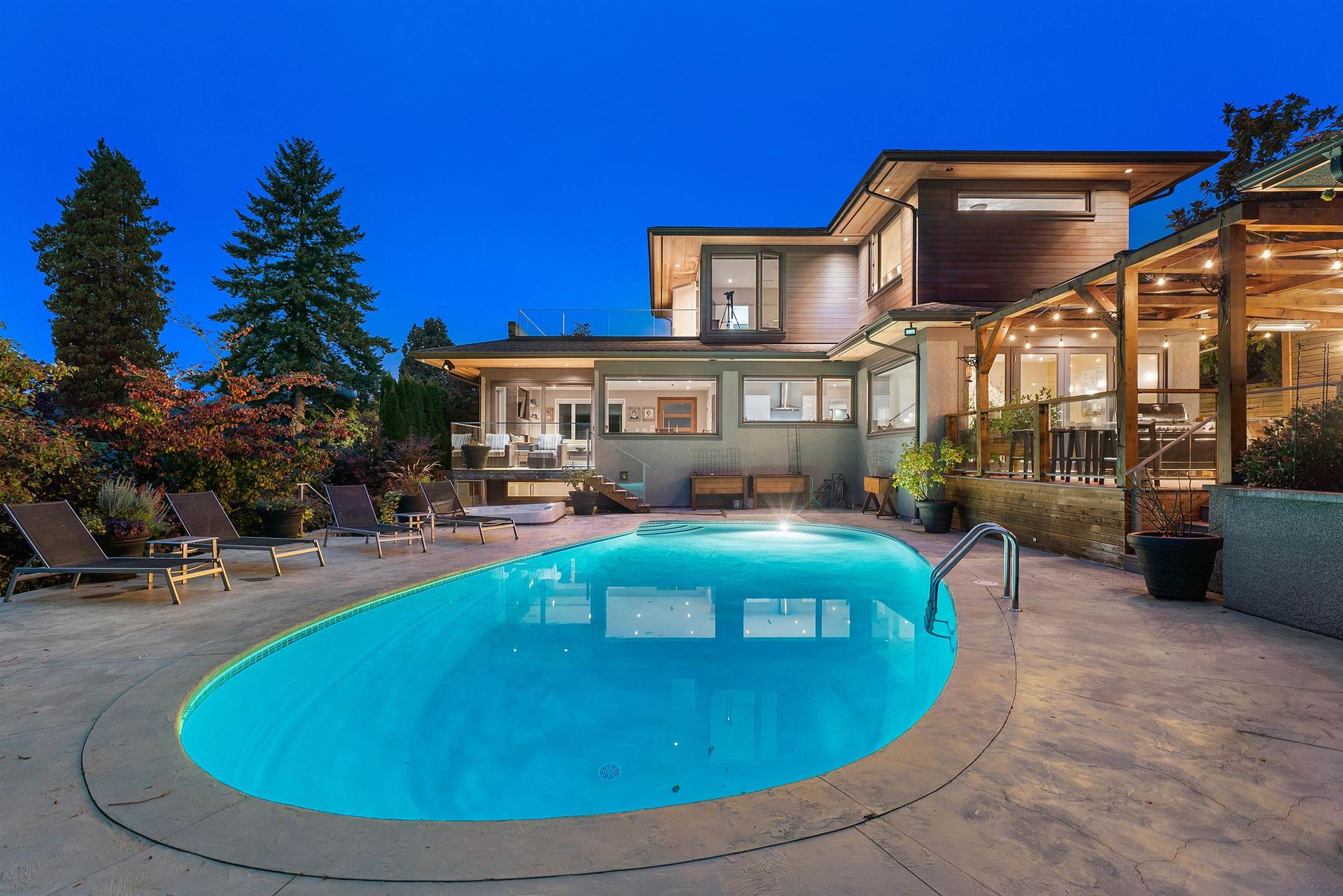 WEST COAST CONTEMPORY DREAM HOME in West Vancouver. Completely rebuilt in MODERN LUXURY in 2016 with STUNNING VIEWS— 3,800 SQFT in size this home with STUNNING SWIMMING POOL that is sun drenched all day as it sits facing SOUTH West soaking up the OCEAN & MOUNTAIN VIEWS. Beautiful gourmet chefs kitchen outfitted with TOP OF THE LINE APPLIANCES and beautiful HARDWOOD FLOORS. Ideal outdoor living with outdoor heated BBQ space with roof cover. Thoughtfully planned yard trimmed with trees, plants and hedges offering PRIVACY for your outdoor living space. SUPERB QUALITY & beautiful DESIGN in every room. DREAM LOCATION – walking distance to Ambleside Beach, Park Royal and more. Come have a look!